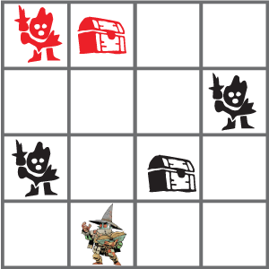 Example: The Thief can enter tiles with enemy figures such as the Warlock. The Knight, however, is forced to attack a Skeleton if she enters its tile.
