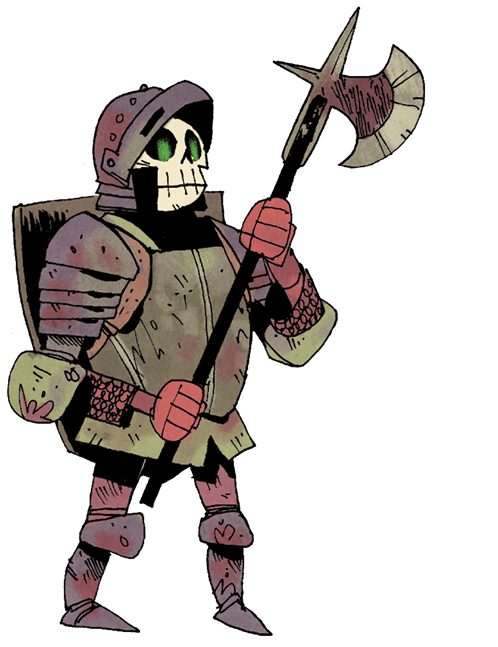 He has 2 Strength against the Skellie’s 1 Defense, so he removes it!
